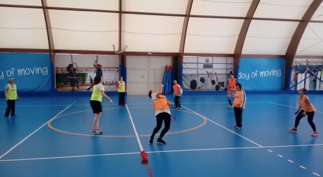 Spiegato brevemente il gioco e fatto qualche esercizio con il pallone, abbiamo provato a giocare ( in 5 contro 5) e....... ci siamo tutti divertiti molto.